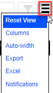 To clear a search, click on the ‘Reset View’ link at the top right-hand action menu.