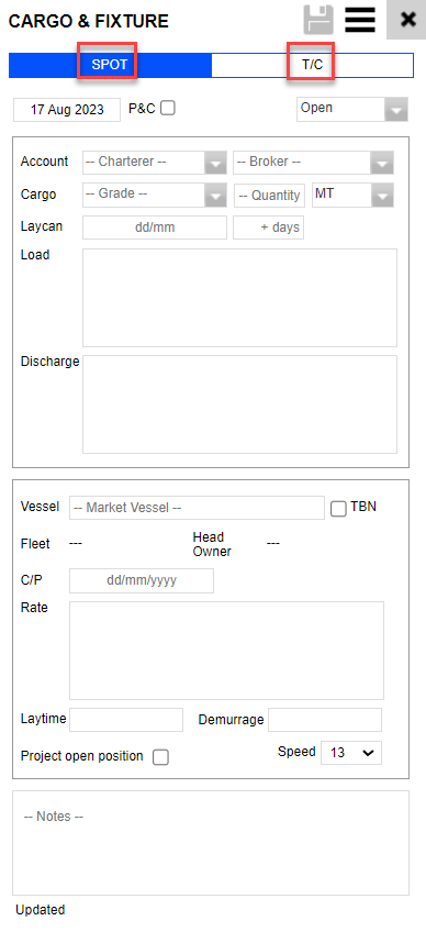 A pop down menu will appear containing four icons, click on the one called ‘Cargoes & Fixtures’.
