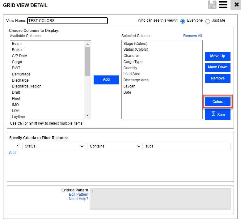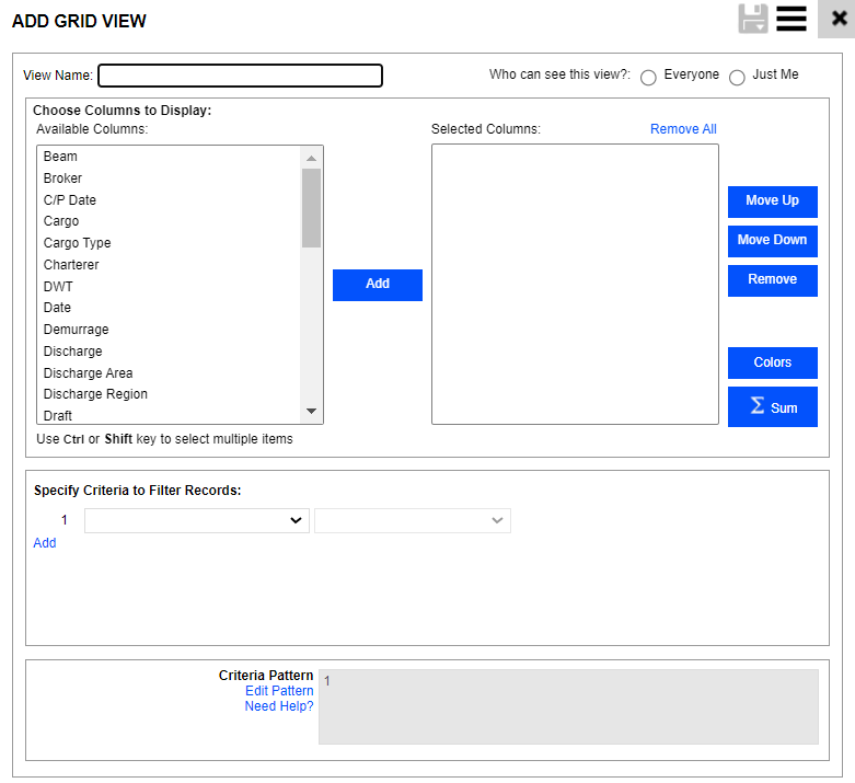 This will bring you to the following pop-up screen where you can add and sort columns to display as well as specify criteria to filter records.