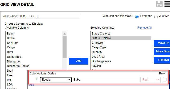 For example, if you want to show all ships that are ‘on subs’ you can set up the conditional formatting as such: