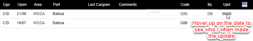 If the user updates a field that is not one of the three fields (Position, Open Date, Last Cargoes), the history will be shown in the lower right hand history area.