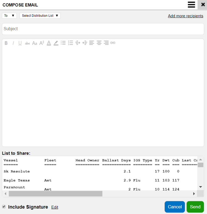Once the email is set up, you will be able to email a list by clicking the “envelope” symbol or the shortcut key “E” for Export (select the email output). Screenshot below is an email sample.