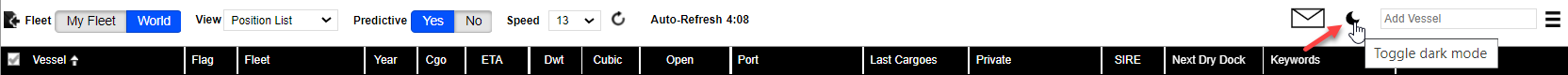 Any vessels that are designated as “My Fleet” will always be presented in bold.