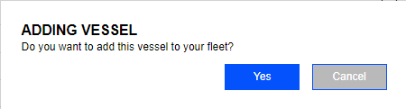 You will get a prompt that asks, ‘Do you want to add this vessel to your fleet?’. By clicking ‘Yes’ the ship is added to ‘My Fleet’.
