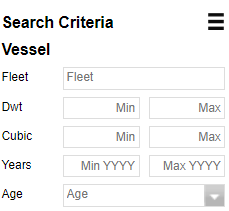 Fleet: Search by ships belonging to a specific commercial operator. Use the multi-select fleet icon to specify multiple Fleets to search on simultaneously.