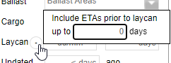 ETA: The ETA window works the same way as the laycan window, but the ship's ETA is based on what is reported by the vessel via AIS.
