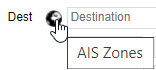 Dest (destination): This field lets you search for ships with a specific destination port or destination area. Use the globe icon to select multiple areas.