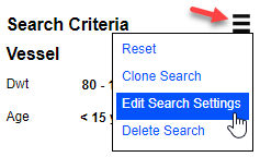 Editing a company saved search will affect all users and any vessels that were manually added or hidden from the search will be reset back.