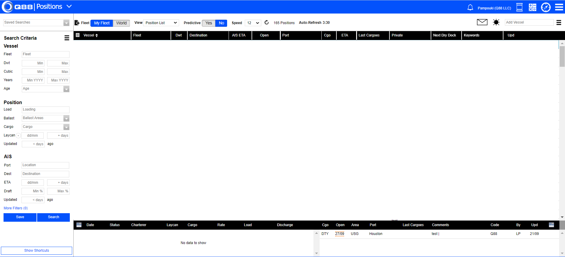 2. Position Criteria - used to search for ships based on their open position