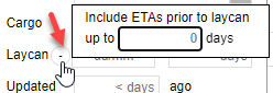 Click on this ( - ) symbol next to the Laycan to include ETAs prior to laycan up to a specified number of days.