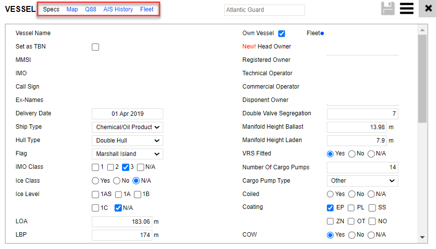 The Q88 Clients are responsible for updating changes to their vessels on Q88.com but you have the option to make changes yourself which will then only be reflected in your own account. The only exception to this is the vessel’s name, fleet and head owner.