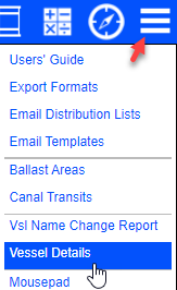 You can also access a vessel’s details from the Action Menu on the top right side, select Vessel Details
