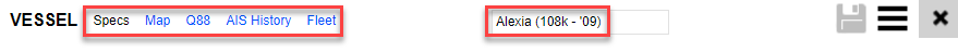 Type in the Vessel Search field the vessel’s name or IMO nr and highlight the vessel to select it. The following tabs are available: