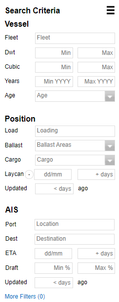 Note: Vessel criteria can be combined with Position OR AIS criteria. Combining both Position and AIS criteria may not return results with valid data. When searching for ships basis their AIS criteria, only the Cargo can be combined from the Position Criteria.