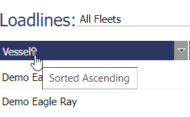 The Loadline grid supports multi-column sorting. An arrow is displayed next to each column once you click on the column header to sort by a specific column. To sort by multiple columns, hold down the Shift key and click each column you wish to sort by.