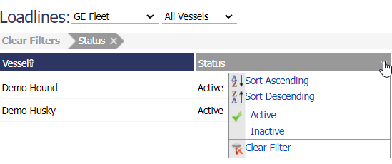 The Loadline grid supports column filtering and functions similar to the filtering available in Microsoft Excel® or SharePoint®. To filter the data, please do the following: