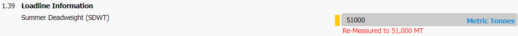 The screen-shot below shows what is displayed in the Loadline detail page for the selected vessel.