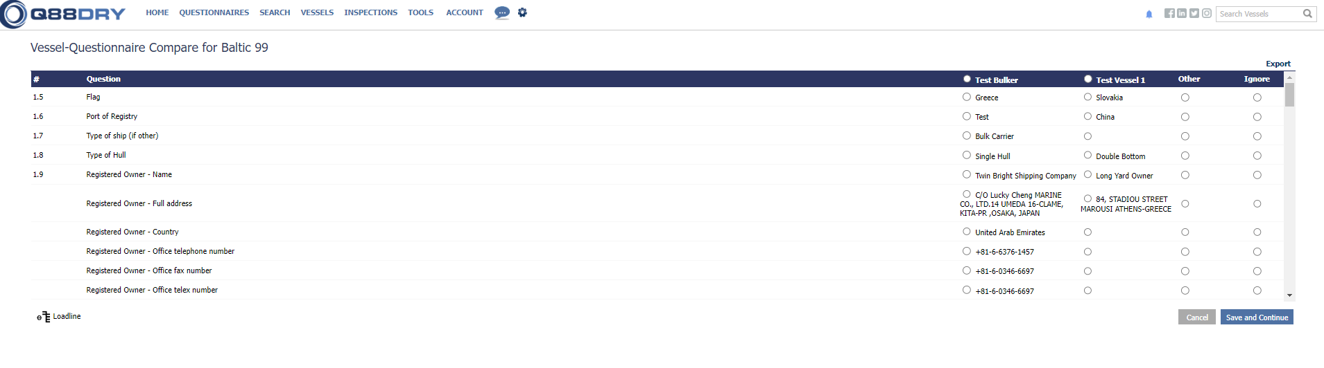 As you go through the list of differences found between the vessels' completed questionnaires, you may notice that one answer is correct and it should be copied to the rest of the vessels. Mark the correct answer for that field and proceed.