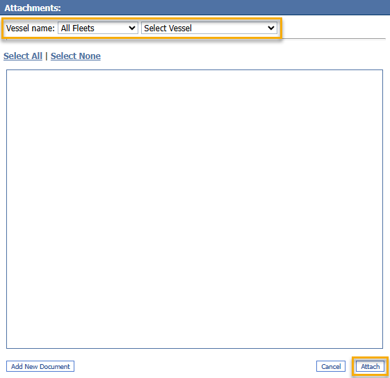 Select the Fleet and Vessel → select the attachment → click on the Attach button: