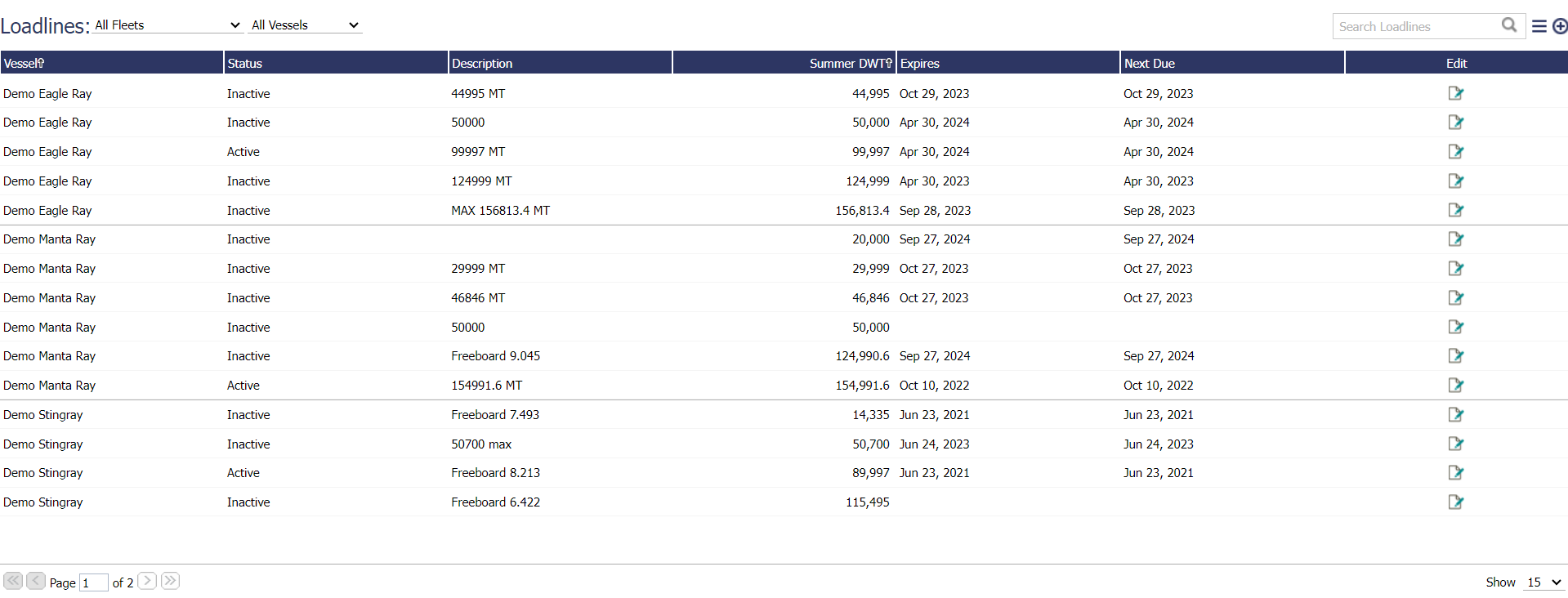 Managing the Loadline information for your fleet can be a daunting task. If you, for example, have a fleet of 20 vessels then you could have up to 100 loadlines to keep track of.