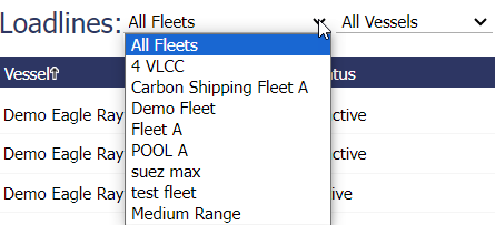 If you have your vessels split into multiple fleets then the “Fleets” drop-down will be displayed in the upper-left corner of the page. Selecting a fleet from the drop-down will refresh the view for the vessels in the selected fleet.