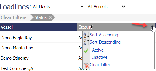 The Loadline grid supports column filtering. This is similar to the filtering available in Microsoft Excel® or SharePoint® (if you are familiar with those software applications).