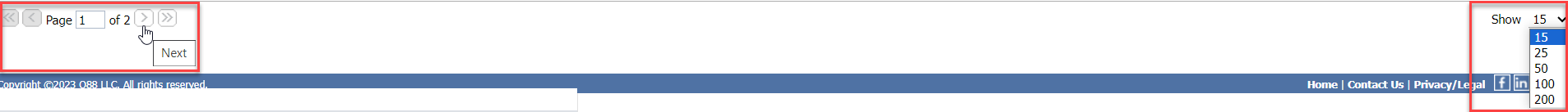 By default, the Loadline grid will display 15 records per page. You can change that option in the lower-right corner of the page to 25, 50, 100 or 200 records per page.