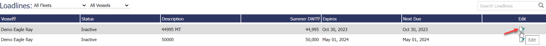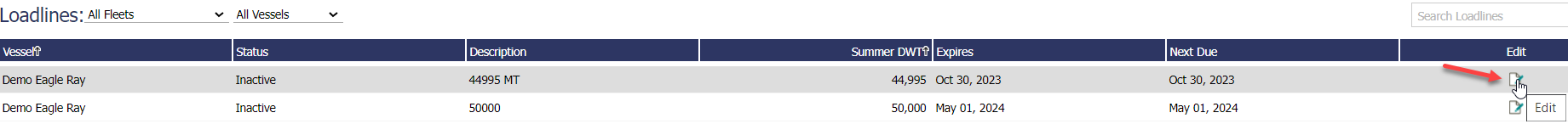 Click the Edit icon in the right column or double click on a row for any record in the Loadline Fleet Overview page.