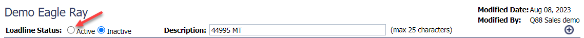Modified Date / Modified By: | Displays the date/time and who updated the selected loadline. |