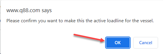 When you click the ‘Active’ radio button you will be prompted to confirm you wish to make the current “inactive” loadline the “active” loadline. Click OK