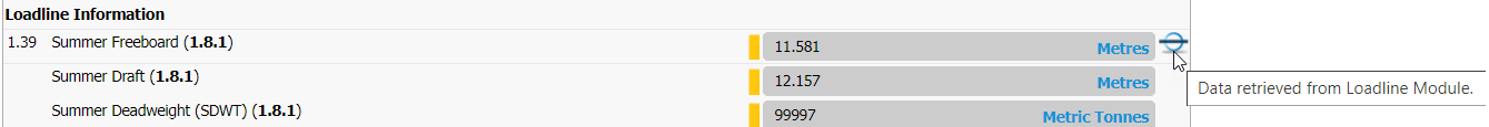 The screen-shot below shows what is displayed in the Loadline detail page for the selected vessel.