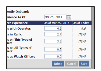 Note: When adding officers, you can enter their current experience such as the date the officer last signed off of a vessel. The As of Today column with then only accrue their ‘Years with Operator’ experience.
