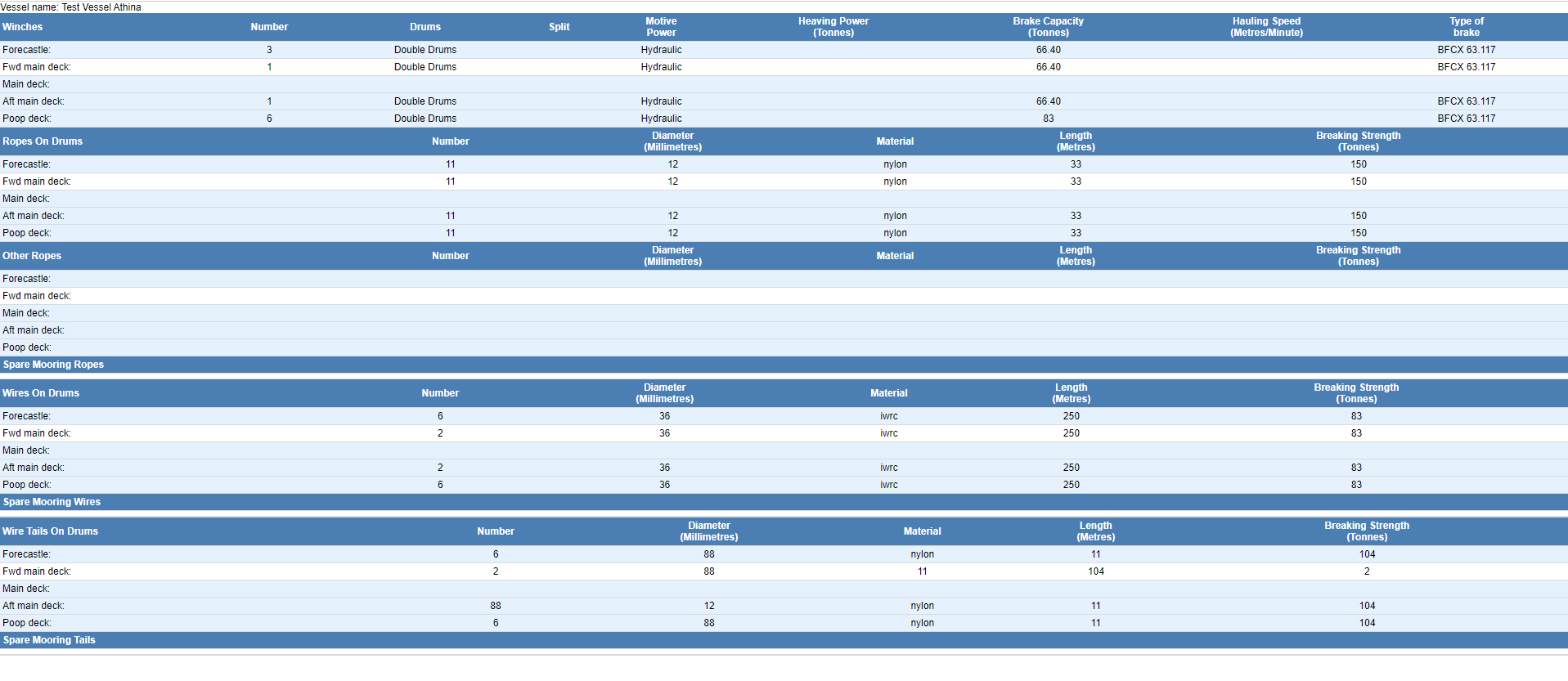 A summary of your vessel's winches, tails, wires, and ropes can be found at the top bar menu under the Vessels tab → Winches & Lines: