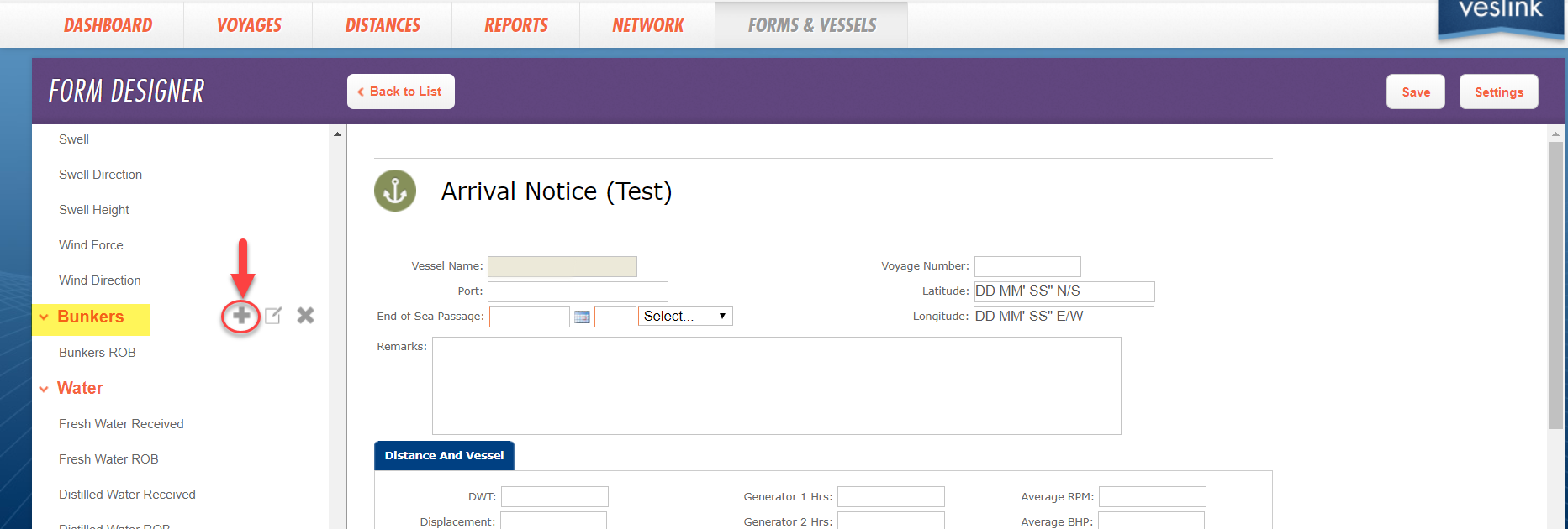To add a Bunker Tanks table to a Veslink form, please follow the steps below as the bunker tanks will first have to be set up in the Vessel.