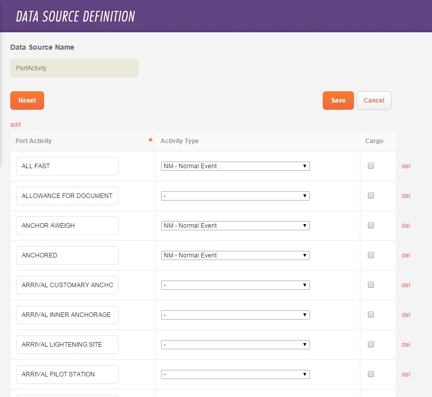 On the Data Sources page, you can define the data to be used for the Cargo Handling and Statement of Facts standard forms: