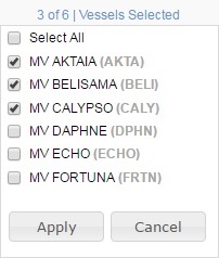 To select the vessels, click Vessels Selected at the top of the page.