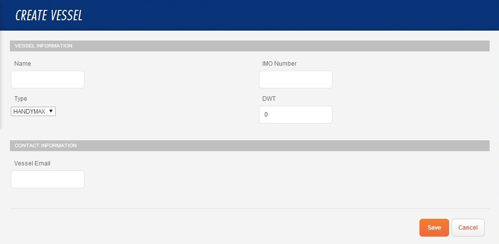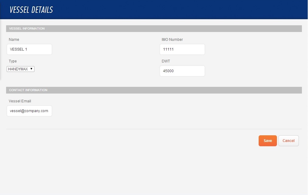 Complete the vessel and contact information and click Save. The vessel appears in the Vessels list.