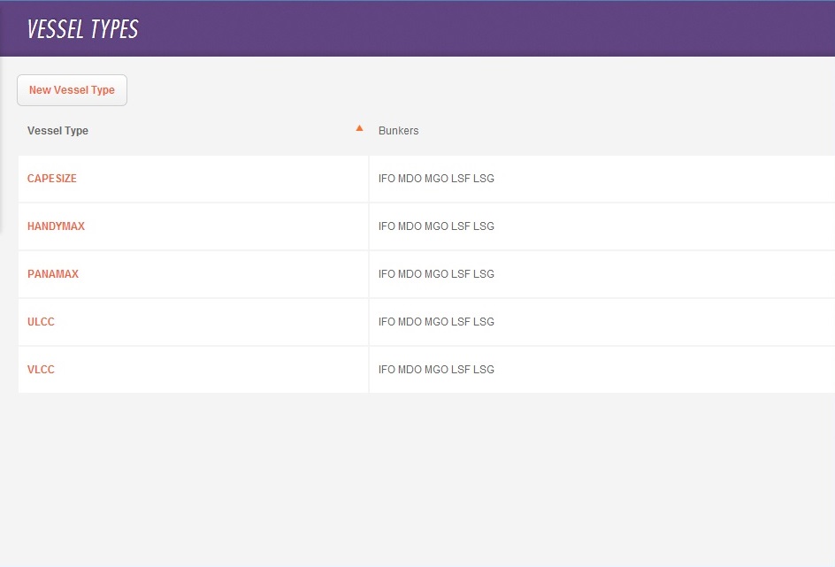 On this page, you can view and edit all the Vessel Types and create new ones.