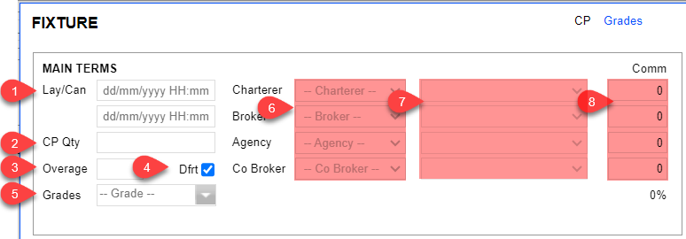 Charterer/ Broker/ Agency/Co-Broker: Select the Company that is tagged to the Group created under the Company Register.