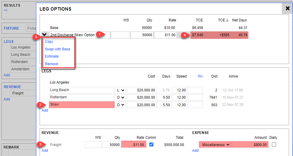 There may be cases where the Recap/Fixture has Load or Discharge Port Options and may come with additional freight. You can indicate these in Leg Options and input new rates. Click Add to start.