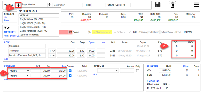 Refer to Vessel Register to see how you can create a new Vessel. Take note to leave the Bunker Consumption data blank. We are not required to capture Bunker Consumption for Cargo Relet voyages.