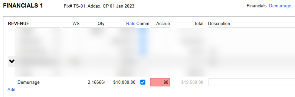 Accrue is used for financial purposes. For Demurrage, VMS defaults the value to 90% whenever a laytime calculation is ‘Save Calculation and Revenue.’ This would affect the TCE. The default value could be adjusted via Settings.