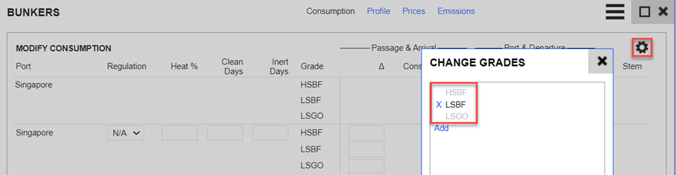 Grades that are greyed out mean that there is ROB in the Estimate/Voyage. To remove them, ROB needs to be zero. Do note that the zero ROB must be from the start of the voyage (Commencement port).