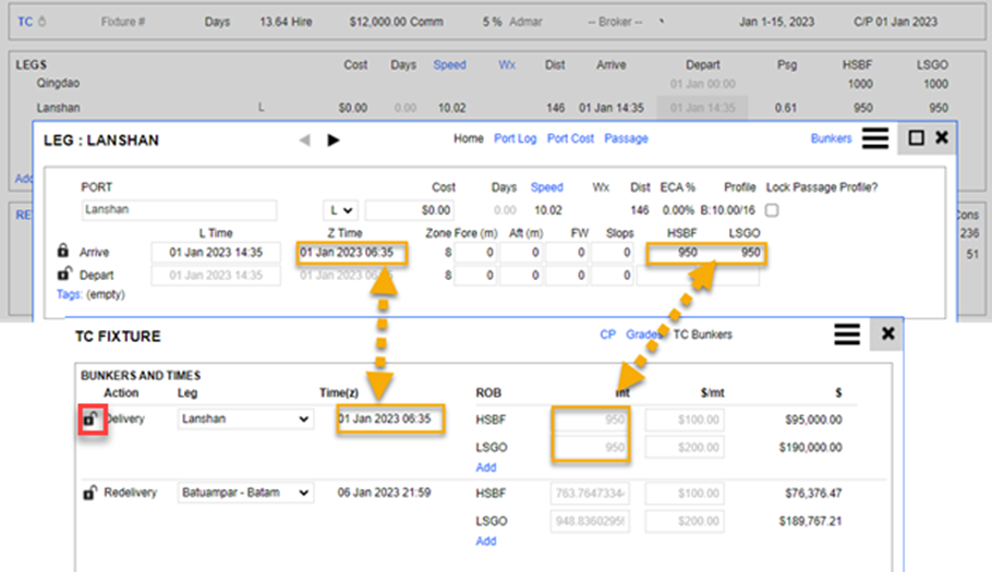 The actualizing of the delivery/redelivery leg does not actualize the TC Fixture delivery/redelivery details. You need to enter the TC Fixture to actualize them by clicking the lock.