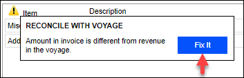 Click the yellow triangle to reconcile the difference between the revenue and the voyage.