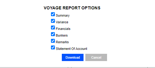 On the voyage page, click the three-bar menu in the upper right and select the Voyage Report option from the dropdown list.